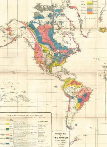 La première édition de la carte géologique de la Terre, par Jules Marcou (1861)